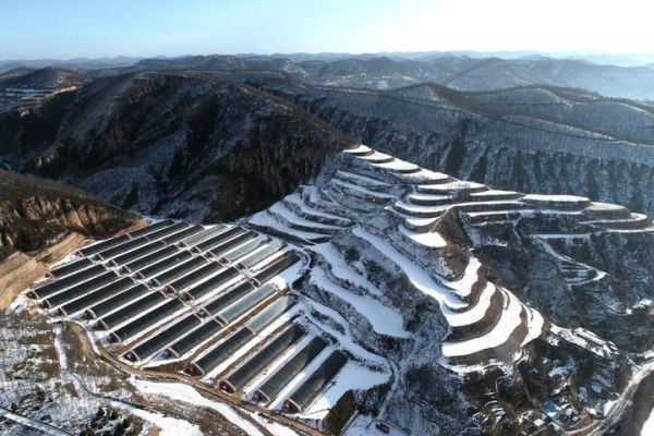 这是2020年1月20日拍摄的延安市宝塔区青化砭镇梁村温室大棚(无人机照片)。 新华社记者 张博文 摄
